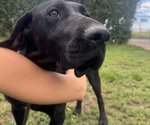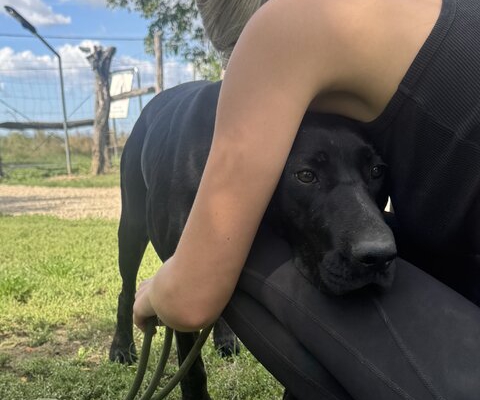 Sie ist sehr menschenbezogen und von der Kategorie „ geduldiger, lieber Hund“.