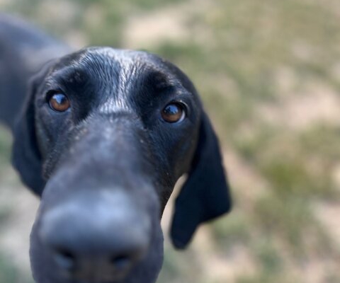 Bársony verfügt über einen ausgeprägten Jagdtrieb, wir gehen davon aus, dass auch eine Portion Deutsch Kurzhaar in ihr steckt.