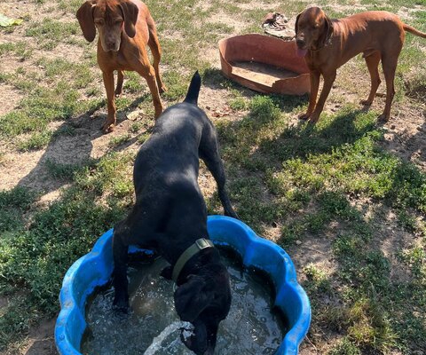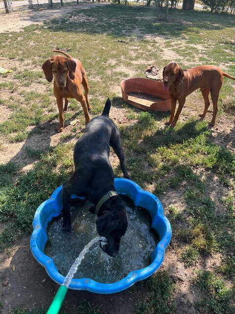 Als es im August in Füle so heiss war, hatte Bársony großen Spaß dem Wasser aus dem Gartenschlauch hinterher zu springen: