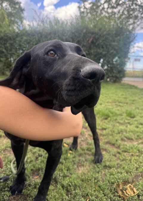 Sie ist sehr menschenbezogen und von der Kategorie „ geduldiger, lieber Hund“.