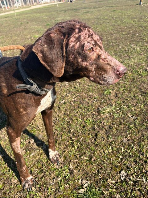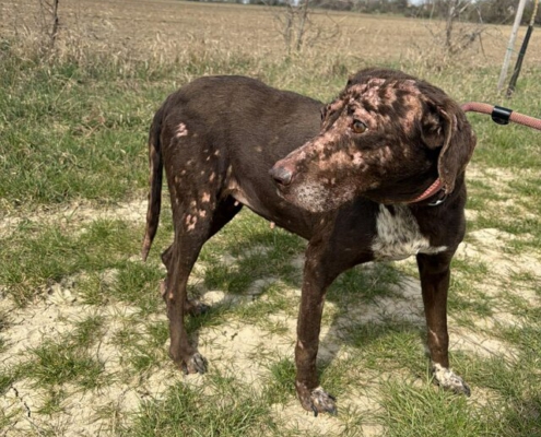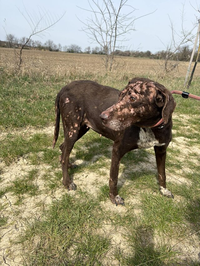 Der Zustand ihrer Haut und des Fells lassen die Vermutung zu, dass sie Räude hatte und dort wenig Aussicht auf Vermittlung bestand.