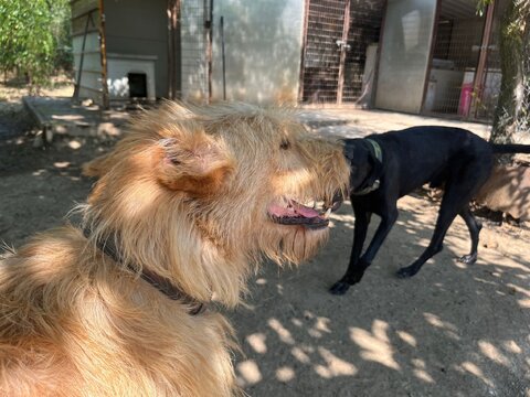 Er ist seit Juni 2020 in Füle und Hajni und ihr Team haben sich sein Vertrauen mit viel Geduld und Ausdauer erarbeitet. Er hat sich seitdem sehr positiv verändert, er ist intelligent und hat immer mehr begriffen, dass er an einem guten Ort ist und ihm nichts angetan wird. Darauf lässt sich sehr gut aufbauen.