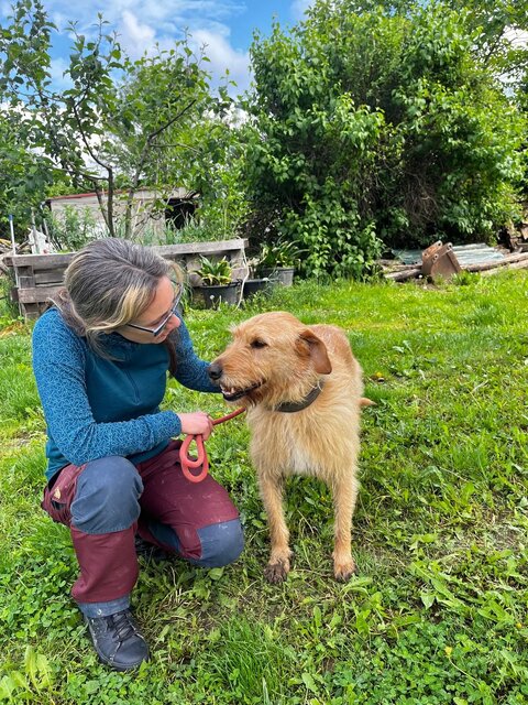Er ist seit Juni 2020 in Füle und Hajni und ihr Team haben sich sein Vertrauen mit viel Geduld und Ausdauer erarbeitet. Er hat sich seitdem sehr positiv verändert, er ist intelligent und hat immer mehr begriffen, dass er an einem guten Ort ist und ihm nichts angetan wird. Darauf lässt sich sehr gut aufbauen.