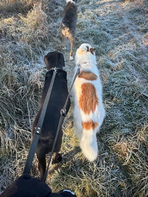 Sie zeigt sich dort als souveräne Hündin und nach entsprechender Ansprache, (dass sie nichts zu regeln hat), läuft sie auch gut in einem Hunderudel mit und spielt mittlerweile auch mit anderen Hunden.