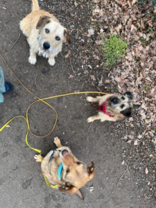 Sára (re. bereits vermittelt), Kag (Mitte) und Buddy (li.) lernen: