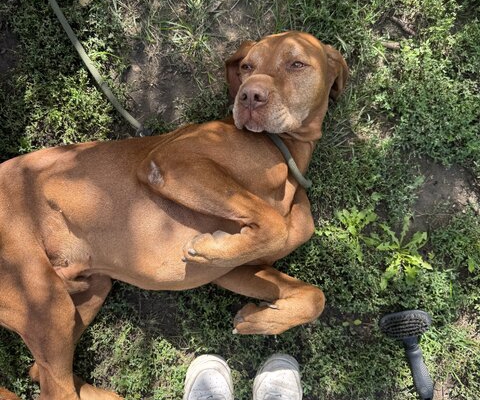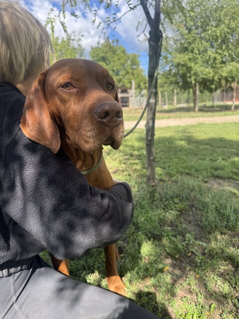 Mázli und sein Sohn Pity lebten in einer Familie und begannen vor ca. 1 Jahr immer wieder wegzulaufen bzw. abzuhauen. Sicherlich wurden sie nicht, wie es ein Vizsla nun mal benötigt, körperlich und geistig ausgelastet. Vergeblich reparierte die Familie mehrfach den Zaun, aber immer wieder machten sich die beiden auf den Weg, sodass die Familie beschloss sie abzugeben. So kamen Mázli und Pity nach Füle.