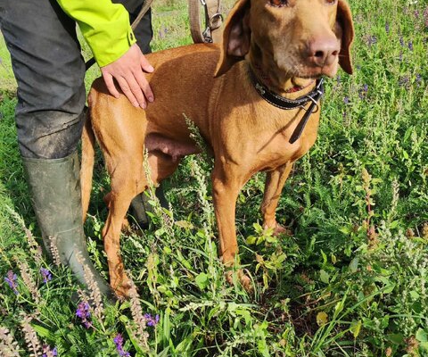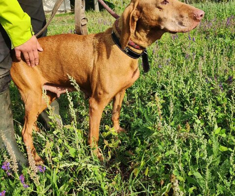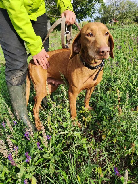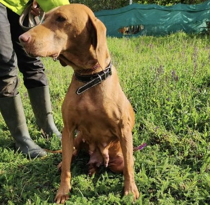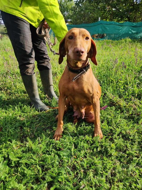 Liebevoll hat sich Zara in den letzten Wochen um ihre Welpen gekümmert und sie aufgezogen. Nun geniesst sie – nachdem die Welpen vermittelt wurden – ihre Ruhe und das gute Leben in Füle im „Vizslaland“.